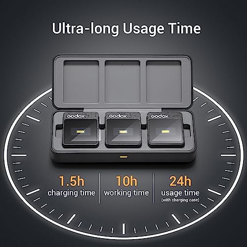 El estuche de carga incluido te permite mantener tus micrófonos listos para usar en cualquier momento, sin tener que preocuparte por la duración de la batería. Y con dos transmisores y un receptor, puedes grabar audio desde dos fuentes diferentes al mismo tiempo, lo que lo hace ideal para entrevistas y otros escenarios de grabación en los que se necesitan múltiples voces.