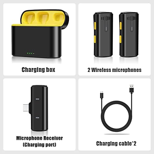 ¡Obtén el kit de micrófono inalámbrico Yevheniys con estuche de carga para iPhone, iPad, Android, video/grabación/entrevistas/TikTok/Facebook Live/YouTube, transmisiones en vivo con cancelación de ruido (Tipo C) ahora mismo!