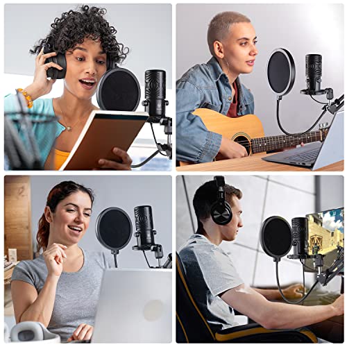 Además, este kit incluye un soporte de micrófono de brazo articulado, un filtro anti-pop y una pantalla antiviento, todo lo que necesitas para empezar a grabar de inmediato. Su fácil conectividad USB lo hace perfecto para su uso con computadoras portátiles y de escritorio, eliminando la necesidad de complicadas configuraciones de audio.