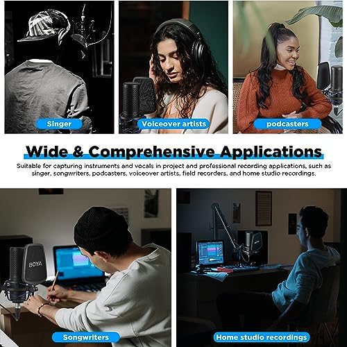 BOYA Micrófono de estudio de gran diafragma para Podcast, nuevo audio Co…