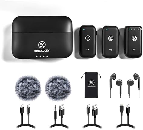 Ya sea que estés filmando con una cámara DSLR, grabando en tu iPhone o dispositivo Android, o incluso transmitiendo en directo desde tu PC, el micrófono inalámbrico Kinglucky es compatible con una amplia gama de dispositivos, lo que lo convierte en una opción versátil para cualquier necesidad de audio.