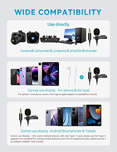 Otra gran ventaja del HUACAM Lavalier Lapel Microphone es su compatibilidad con una amplia gama de dispositivos. Ya sea que estés utilizando un iPhone, un Smartphone Android, un amplificador, una PC/portátil, o cualquier otro dispositivo de grabación, este micrófono te ofrece una conexión perfecta y una calidad de sonido impecable. No importa cuál sea tu dispositivo de elección, este micrófono te garantiza una grabación profesional y sin complicaciones.
