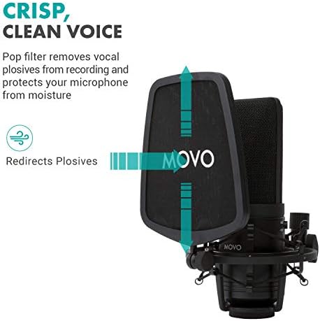 El paquete incluye un micrófono Movo VSM-7 XLR de condensador, un brazo articulado para micrófono y un filtro pop que garantiza la eliminación de los molestos ruidos de respiración y los pops que suelen interferir en las grabaciones.