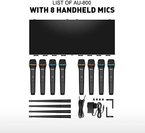 Ya sea que estés organizando un evento en un salón amplio o simplemente disfrutando de una noche de karaoke en casa, el AU800 Pro se adapta a cualquier entorno. Con 8 micrófonos inalámbricos de mano y de diadema, este sistema es perfecto para ser utilizado por múltiples personas al mismo tiempo, brindando una experiencia sin complicaciones y asegurando que todos sean escuchados claramente.